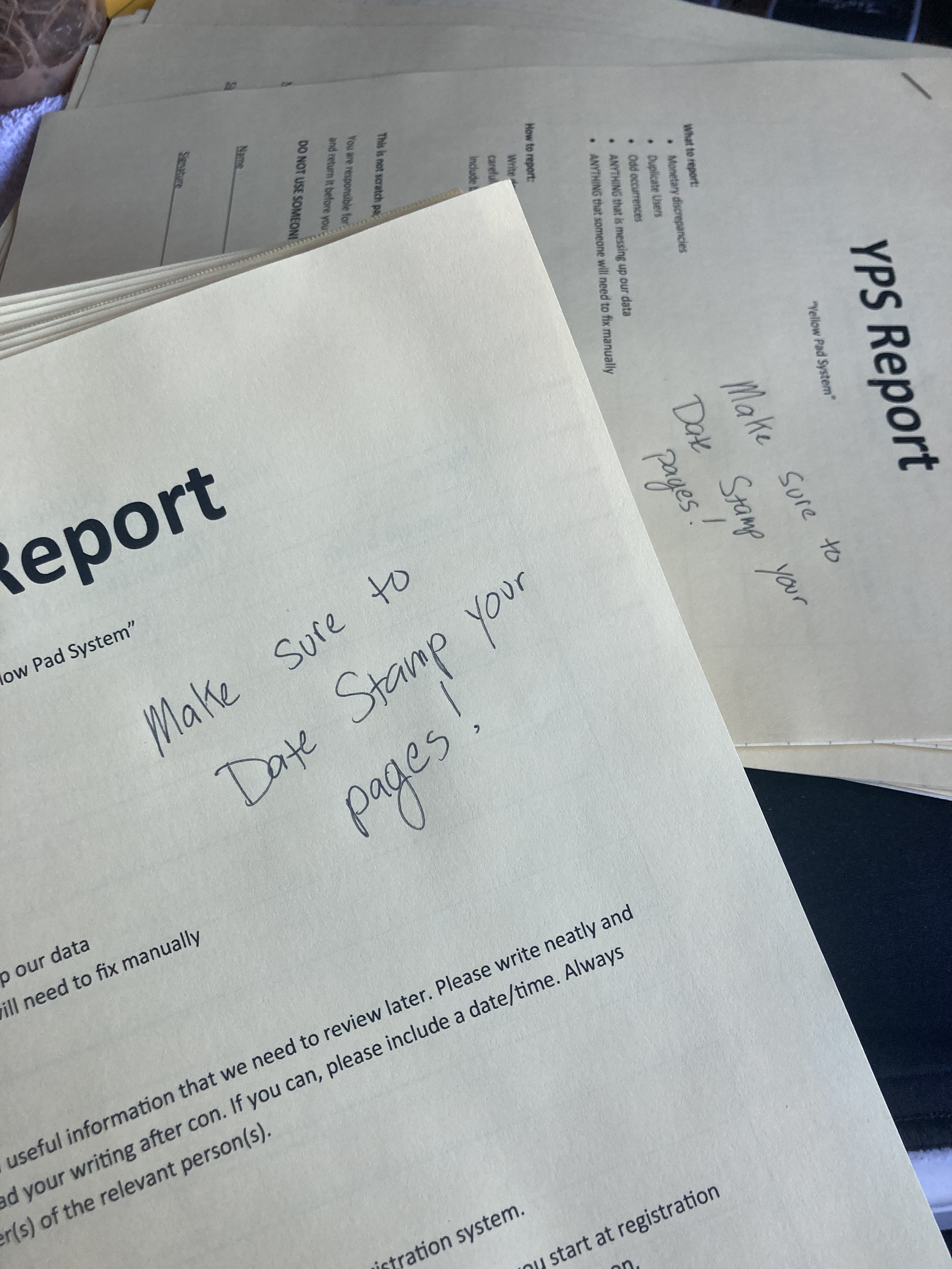 Hand writing a note on 30 packets instead of reprinting them. Thought of the WFM server.