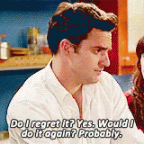 I flippantly replied “yeah maybe, probably not,” and I looked up with a grin to see Tim give me the sternest look he’s ever given me.Fuck, I lost all composure. Broke eye contact, looked away and toward the ground really hard/fast, and got super flustered.