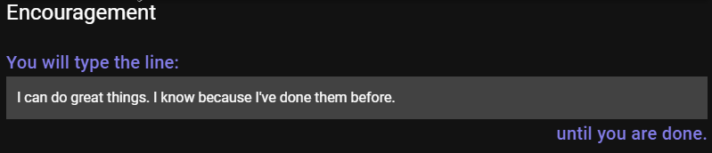 Made a private discord just for Tim and me. And I programmed a bot to lock me out of a channel on a timer đ